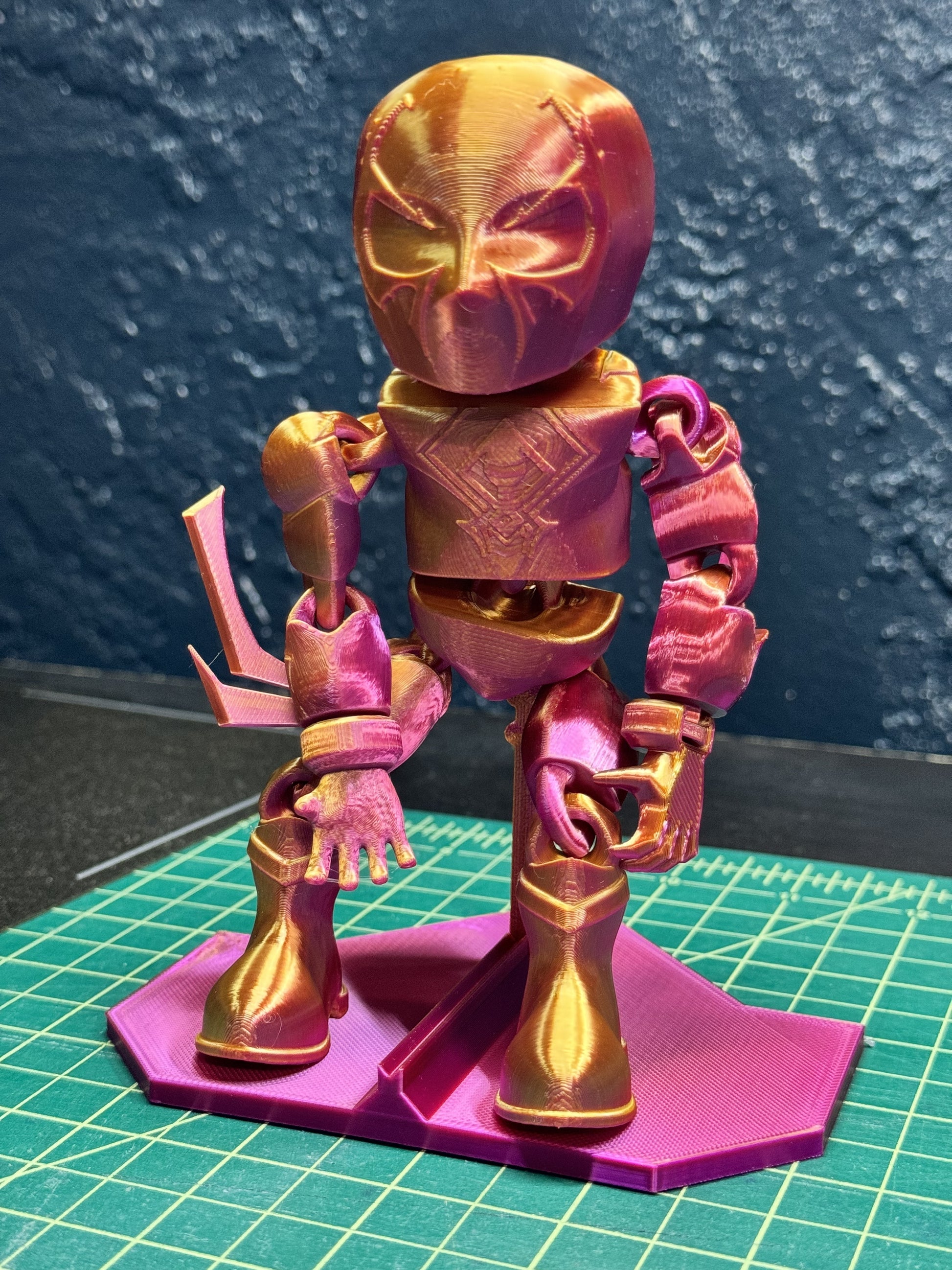 This is a print in place flexi toy of Spiderman 2099 from the Spider-verse movies. This fully articulate flexi toy can be 100% print-in-place with no supports.